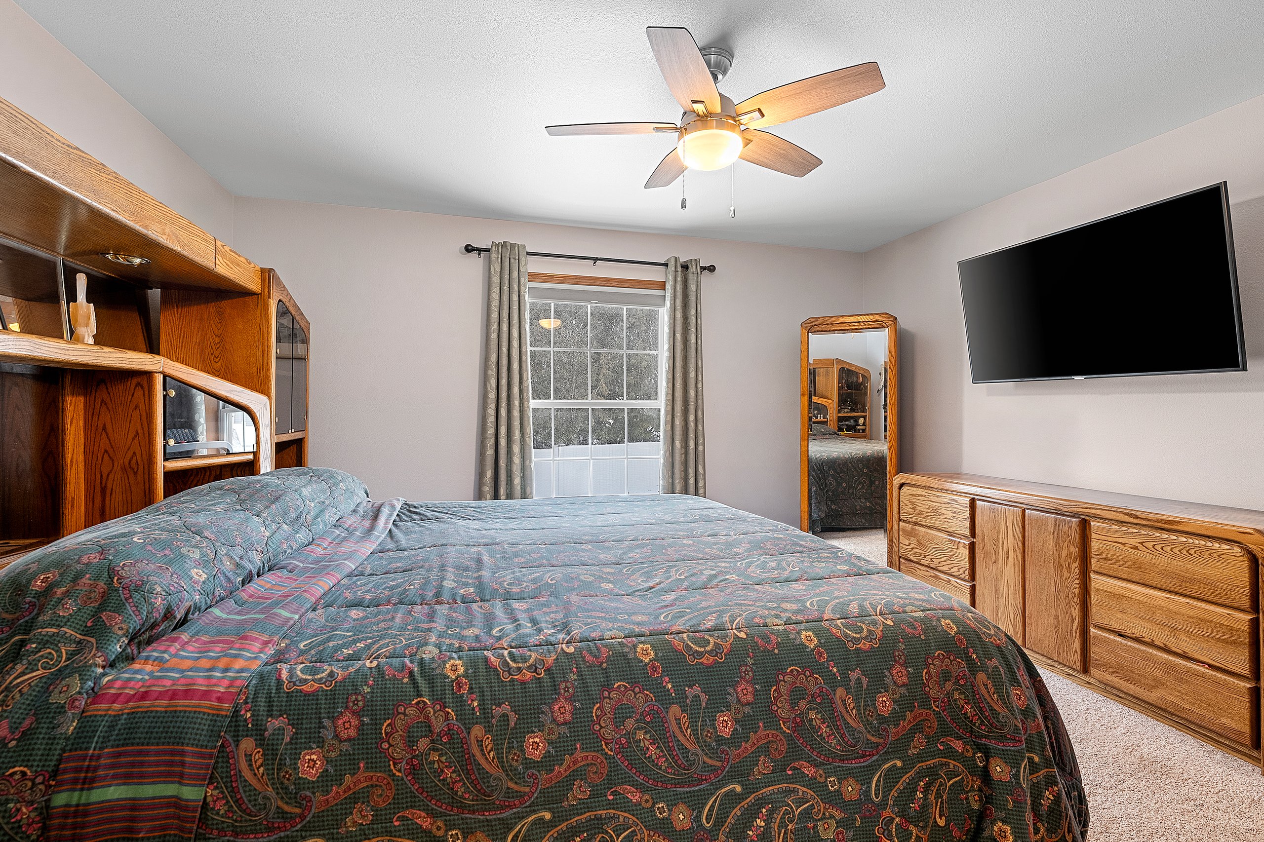 The backyard offers privacy with a newer maintenance-free fence, plus a storage shed and garden area. A covered front deck welcomes you home with charm and a perfect spot to relax. Designed with ease and comfort in mind, all interior and exterior doors are 36” wide, and you’ll appreciate the convenience of main floor laundry. The private master suite features a walk-in closet and full bath, with ceiling fans throughout.