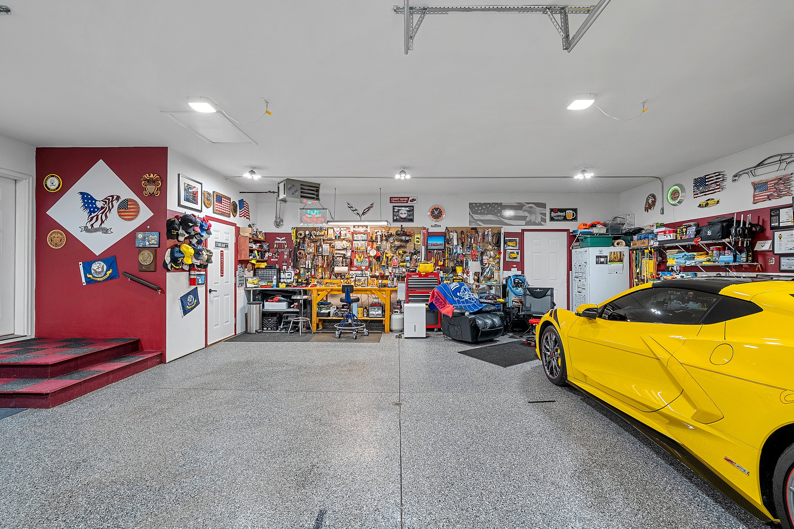 Now let’s talk garage space… This property is a dream setup—an insulated 3-car garage (with 2 doors) featuring insulated walls and ceiling, finished interior, insulated overhead doors, custom epoxy floor, industrial heater with its own thermostat, 220-amp panel, and French drain with 8” pipe. PLUS an additional finished 1-car garage—perfect for hobbies, storage, or extra vehicles. Easily accommodates 4 cars. Two workbenches in main garage are negotiable to remain. The two metal workbenches in the one car garage ARE STAYING (included).