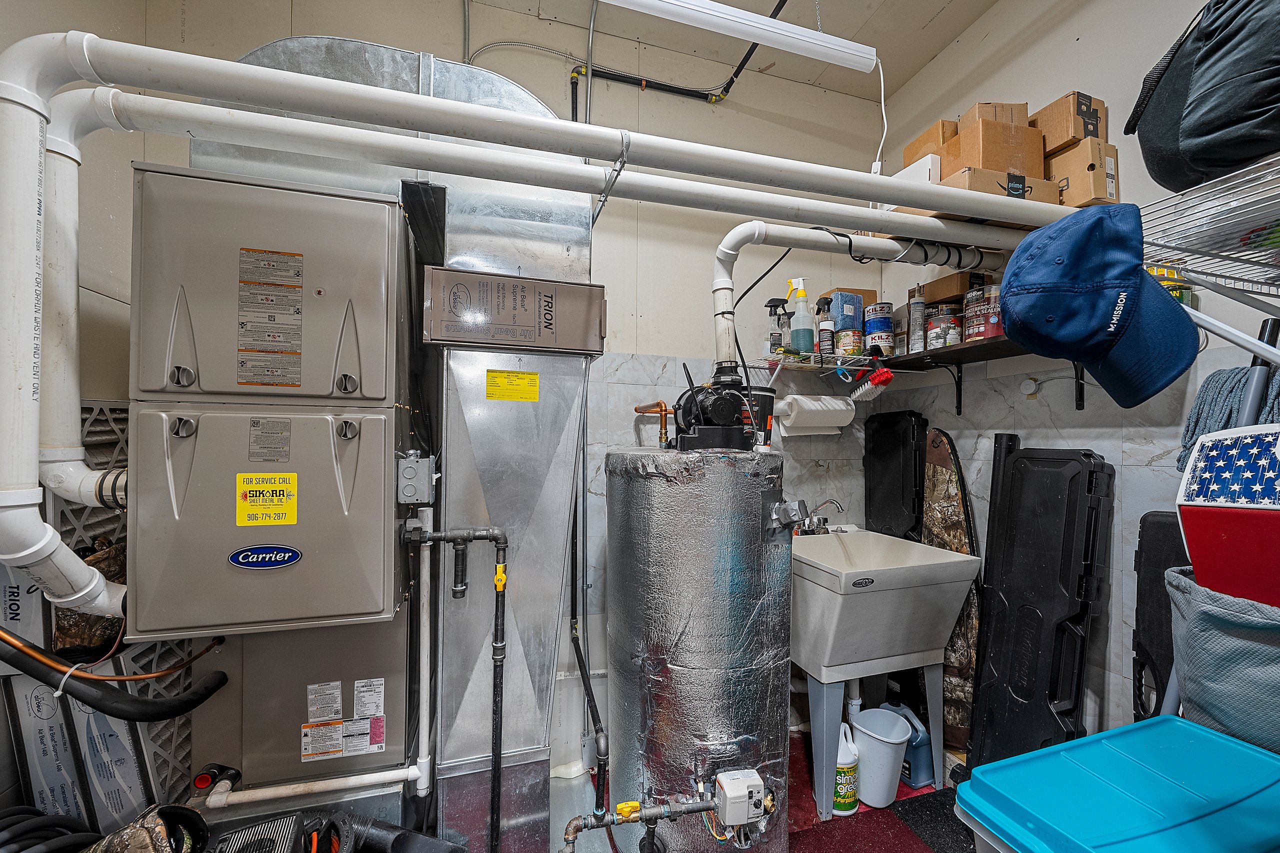 Mechanical updates include natural gas forced air heat, central air, reverse osmosis system, Culligan water softener, and aluminum gutters with gutter guards. The home has a complex water purification system for efficiency and convenience. Exterior water for the backyard bypasses all systems and is city water for lawn and garden. Whole house Culligan water system supplies both bathrooms. Additional reverse osmosis system specifically serves the additional spout on the kitchen sink for drinking and cooking water and also serves the refrigerator drinking water and ice maker.