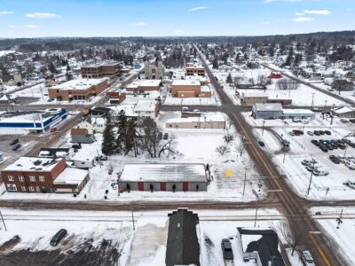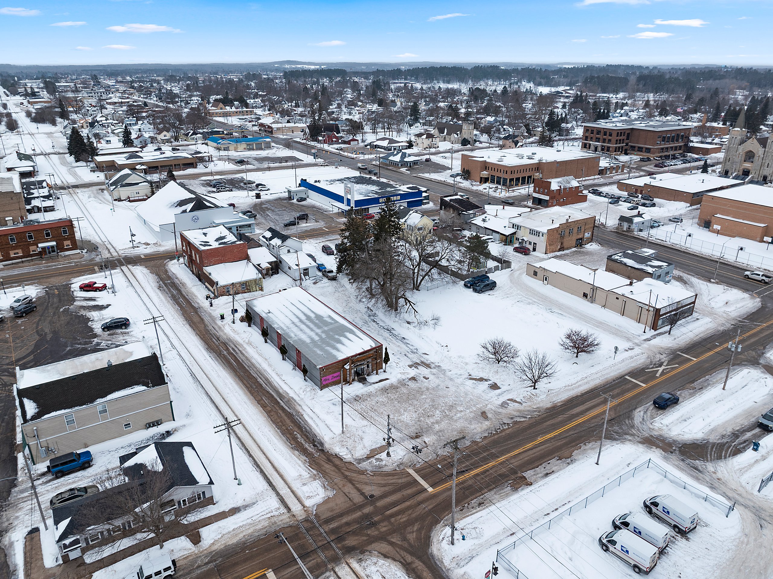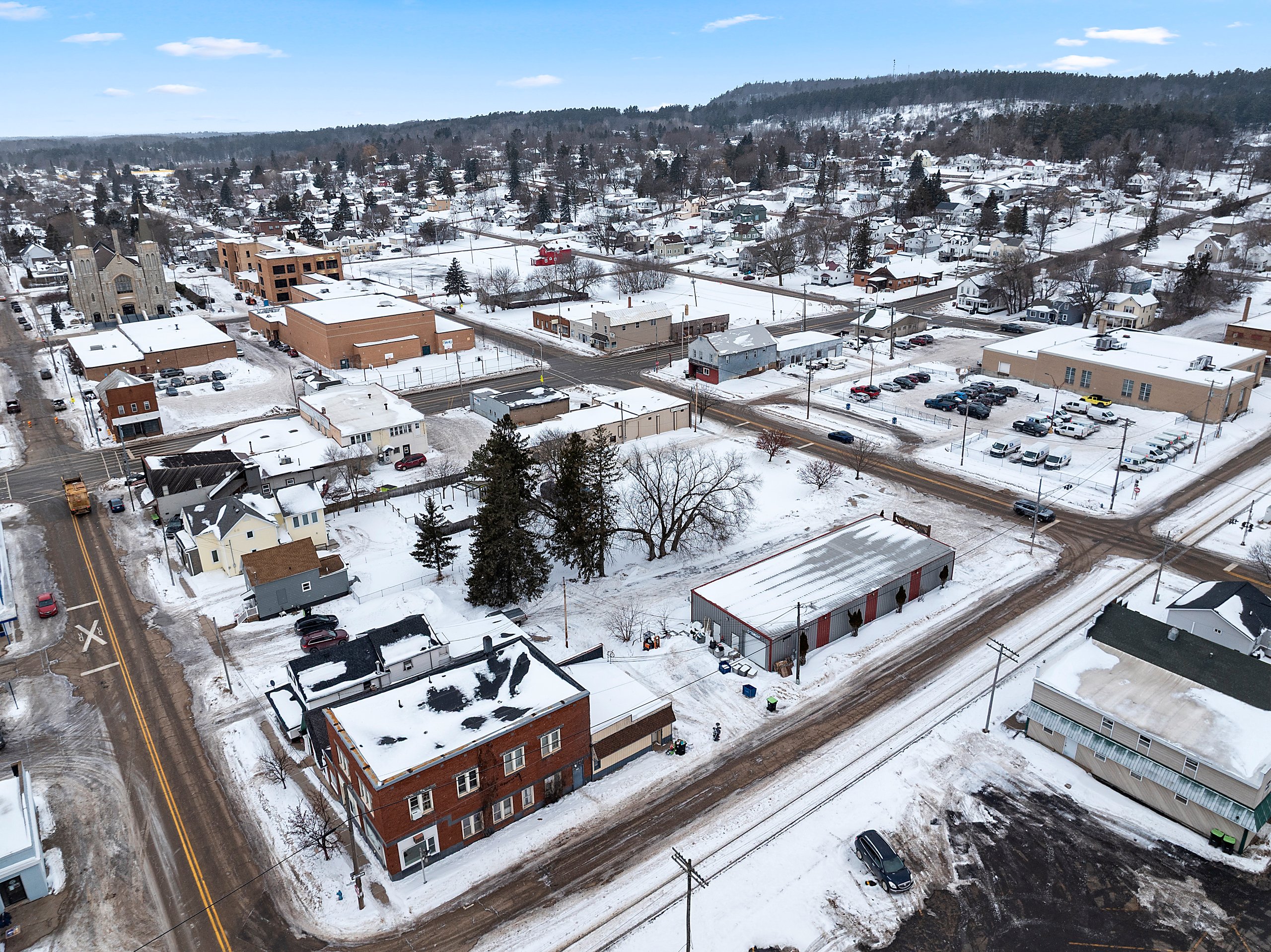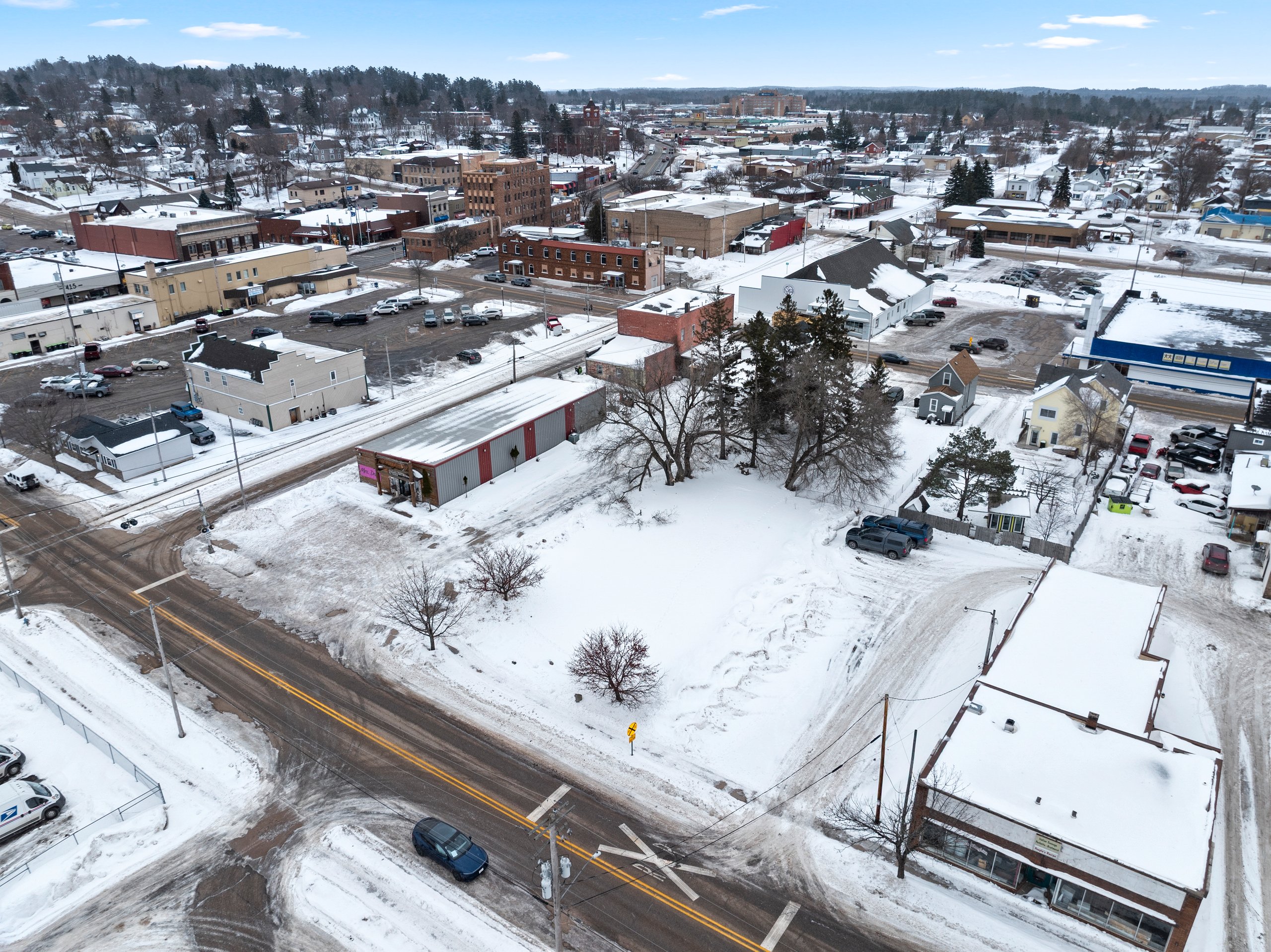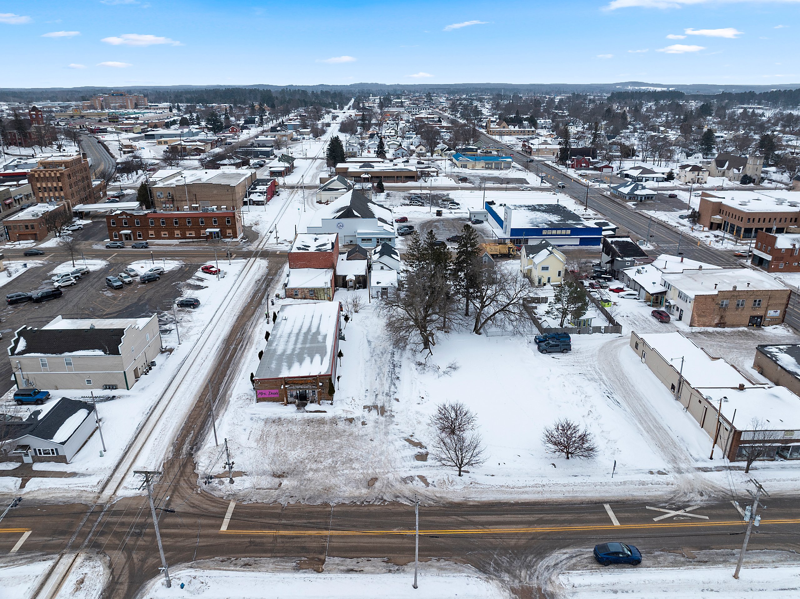 attached garage with an overhead door behind the building with extra parking as well as rear entrance, providing flexibility for a variety of business uses. Situated on a highly visible corner lot encompassing three city lots totaling approximately half an acre, this property features an established parking lot with room for future expansion. Its excellent location offers convenient access to downtown post office , shopping and restaurants, enhancing both visibility and accessibility. A versatile opportunity with space, location, and expansion potential.
