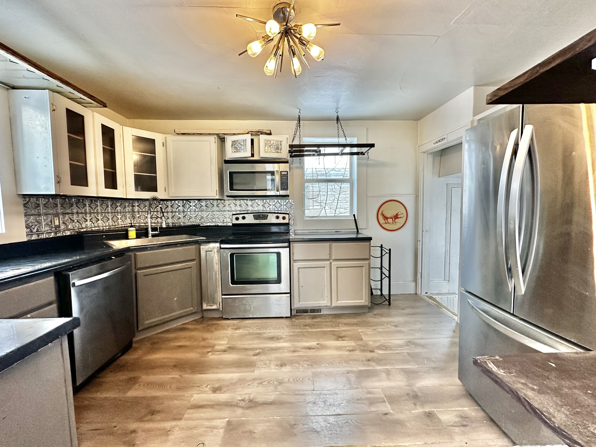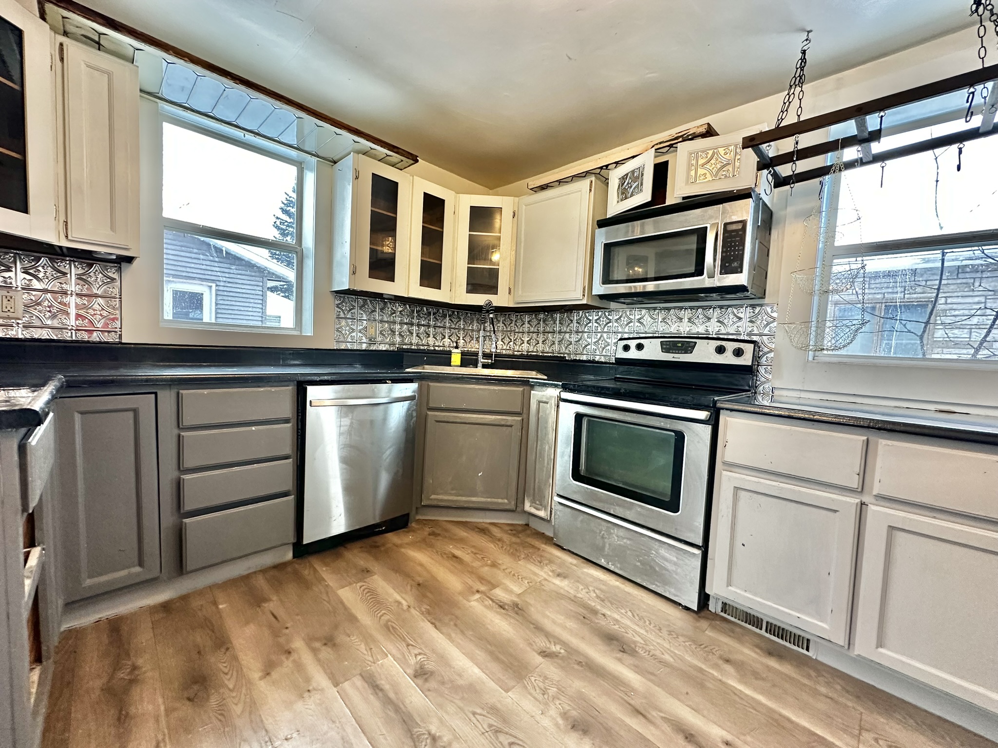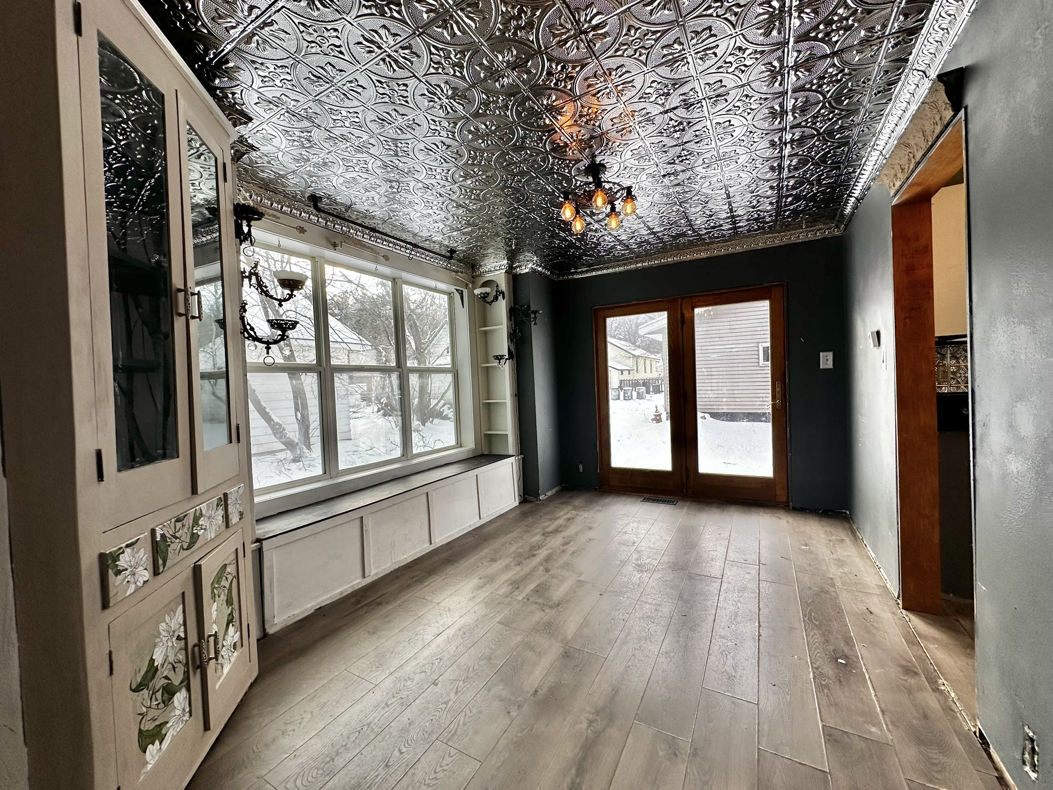 Discover this charming 3-bedroom, 1-bath home located in the highly desirable Kingsford area. As you approach, the quaint front porch invites you in and sets the tone for the warmth found throughout the home. Inside, the welcoming living room features an open straircase leading to the upper level with bedrooms and bath, adding character and an airy feel to the space. The formal dining room is a standout, offering a cozy window seat flanked by built-in shelving and beautiful glass patio doors that open to the rear deck - perfect for entertaining or enjoying quiet evenings overlooking the backyard. A 2-car detached garage adds convenience and plenty of storage. Situated within walking distance to parks, restaurants, and local amenities, this home combines comfort, charm and an ideal location. Move in and make it your own.