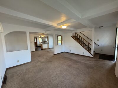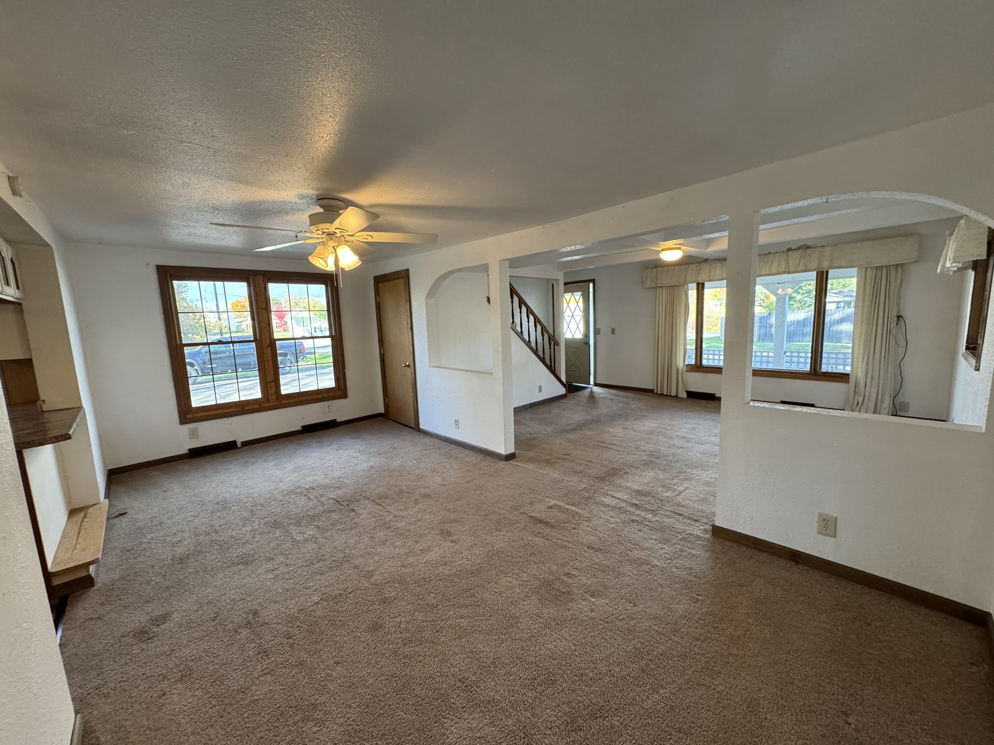 The large dining and living rooms feature an open-concept layout ideal for entertaining or family gatherings. With first-floor living, two full baths, and abundant natural daylight throughout, this home offers both comfort and functionality. Upstairs you’ll find a cozy 9x9 sitting room, perfect for reading, crafts, or a small office. Ready for your own personal touches, this home is full of potential and charm! Stove, refrigerator, washer and dryer included. Dishwasher does not work.