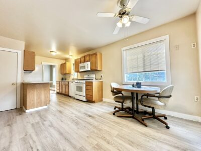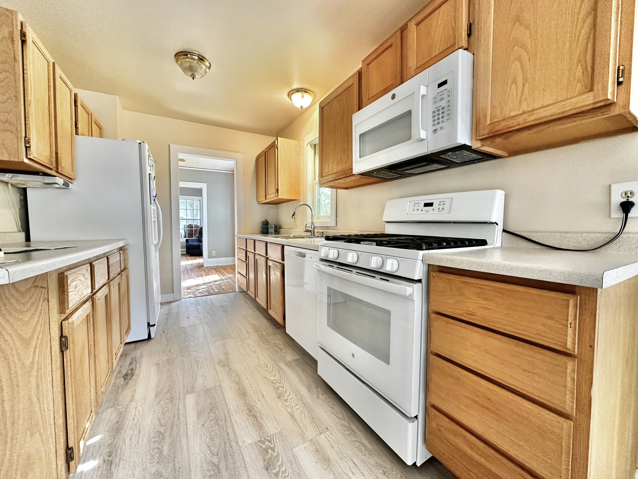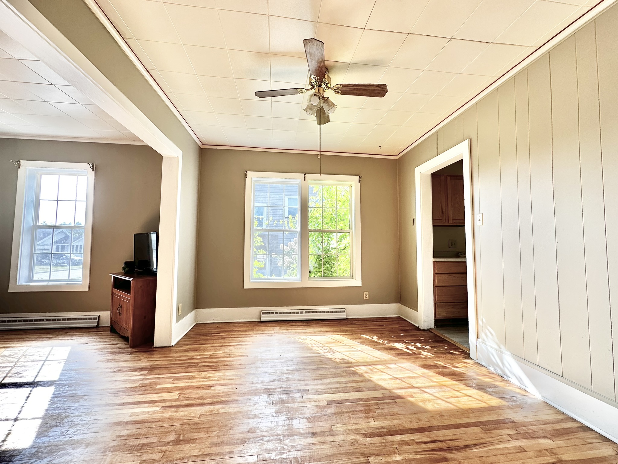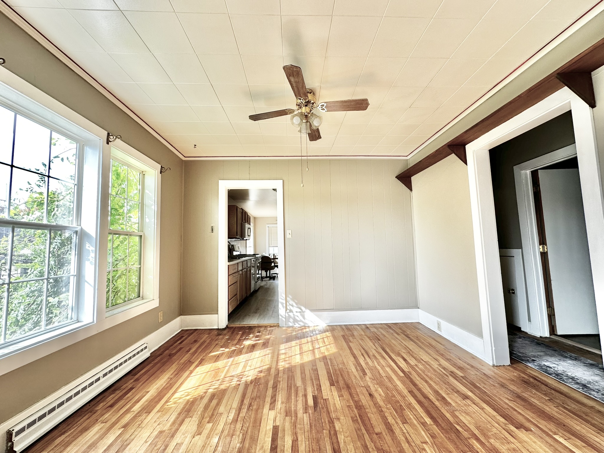 This inviting 3-bedroom, 1-bath home is full of character and comfort. Hardwood floors flow through the formal dining and living rooms, while the bright eat-in kitchen offers newer flooring and a spacious closet area perfect for a pantry. The large bathroom features both a walk-in Jacuzzi tub and a separate shower for added convenience. Enjoy bonus space in the basement with an older finished family room and a third non-conforming bedroom. An addition to the home provides a poured basement area, ideal for extra storage. Relax on the enclosed front porch or entertain on the two-level back deck overlooking the fenced yard. A 1-car detached garage with carport adds to the practicality. With its convenient location near parks and schools, this home combines charm, functionality, and opportunity!