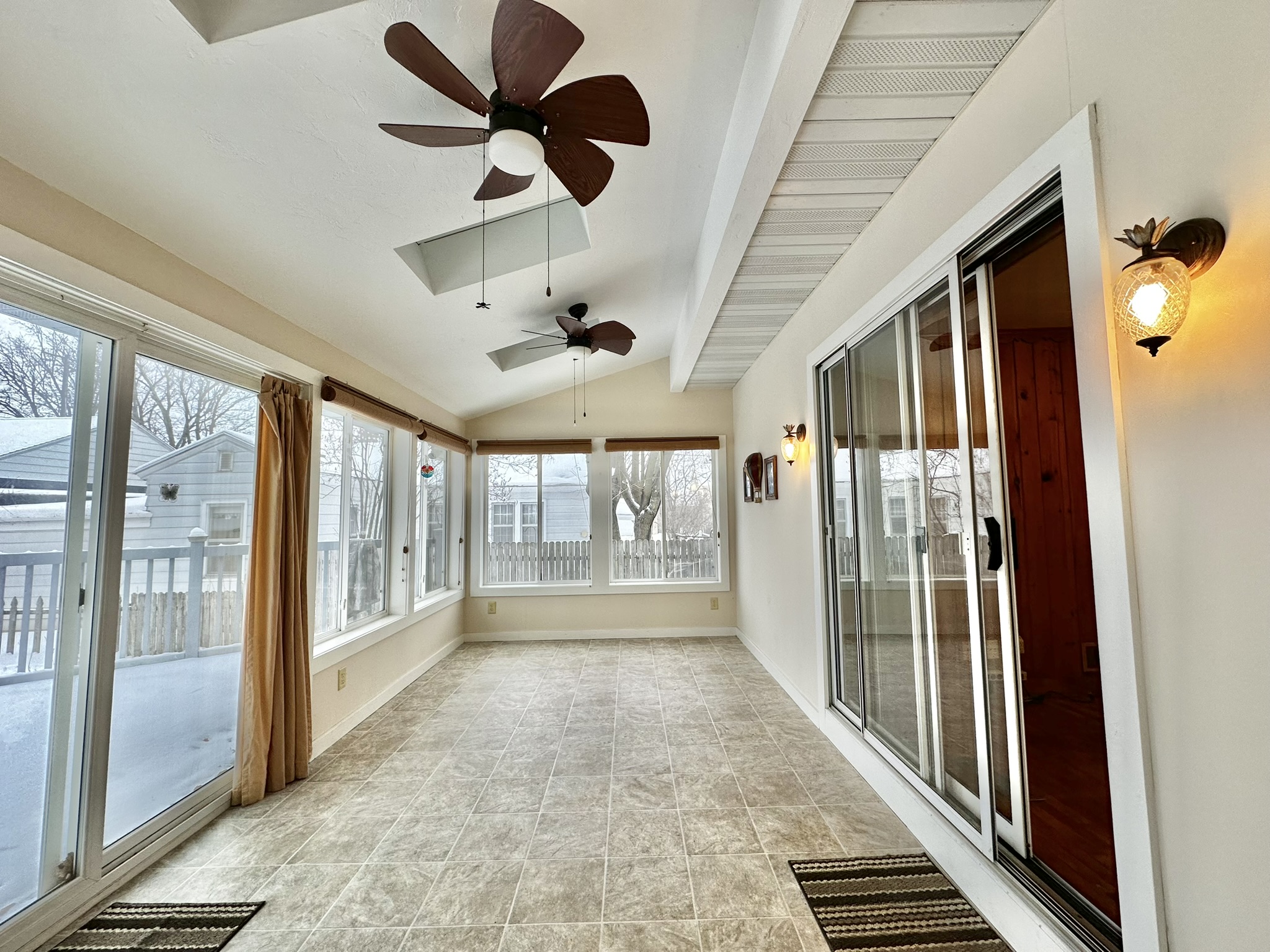 Welcome to this spacious and charming 4+ bedroom, 2 full bath home situated on a desirable double corner lot. As you enter, the family room flows beautifully into a stunning newer sunroom featuring skylights, tiled floors, and access to a private backyard deck – perfect for