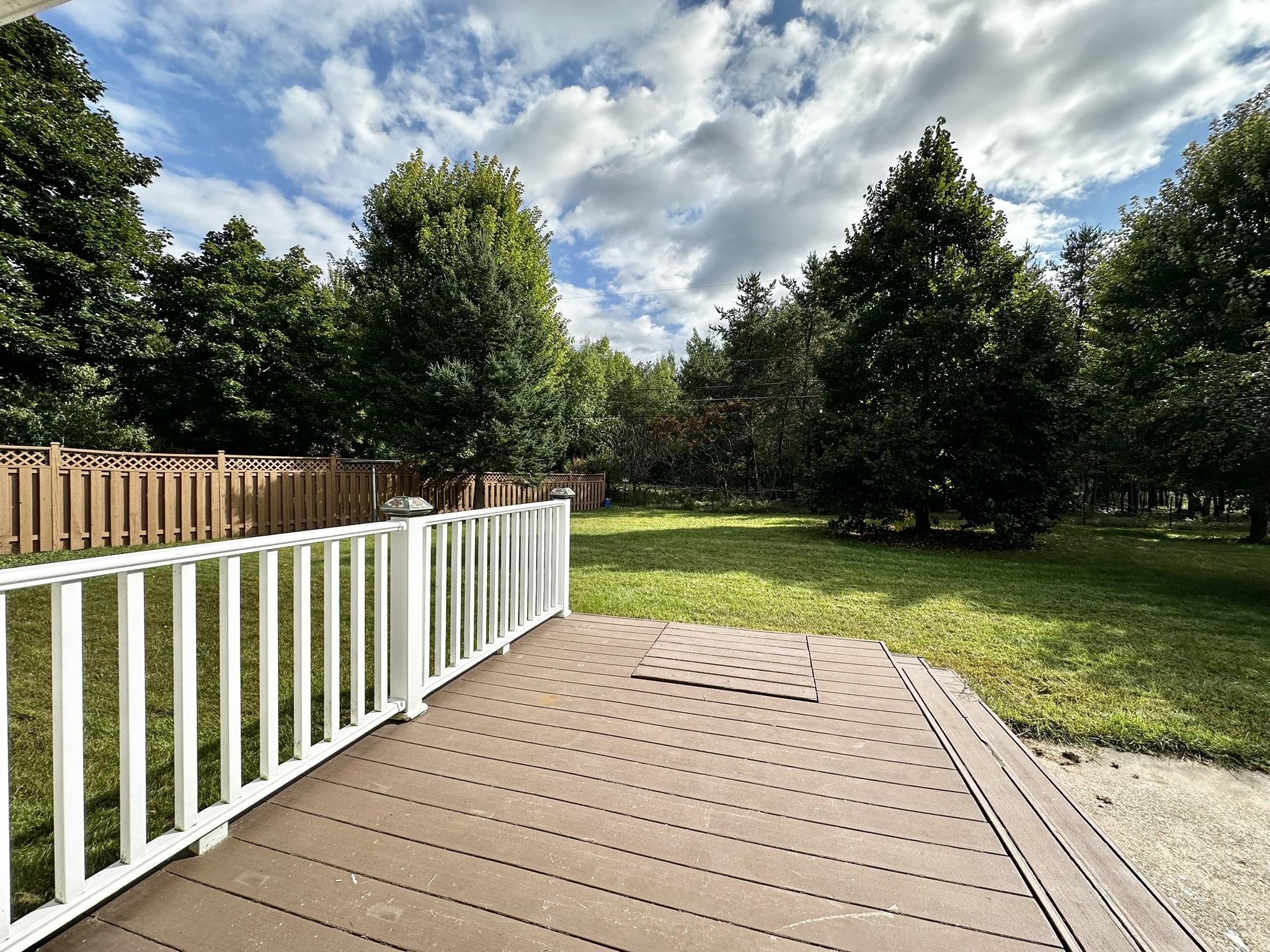 opportunity. The main floor features a large living room, a dining area with access to the deck and fenced backyard, and a kitchen with