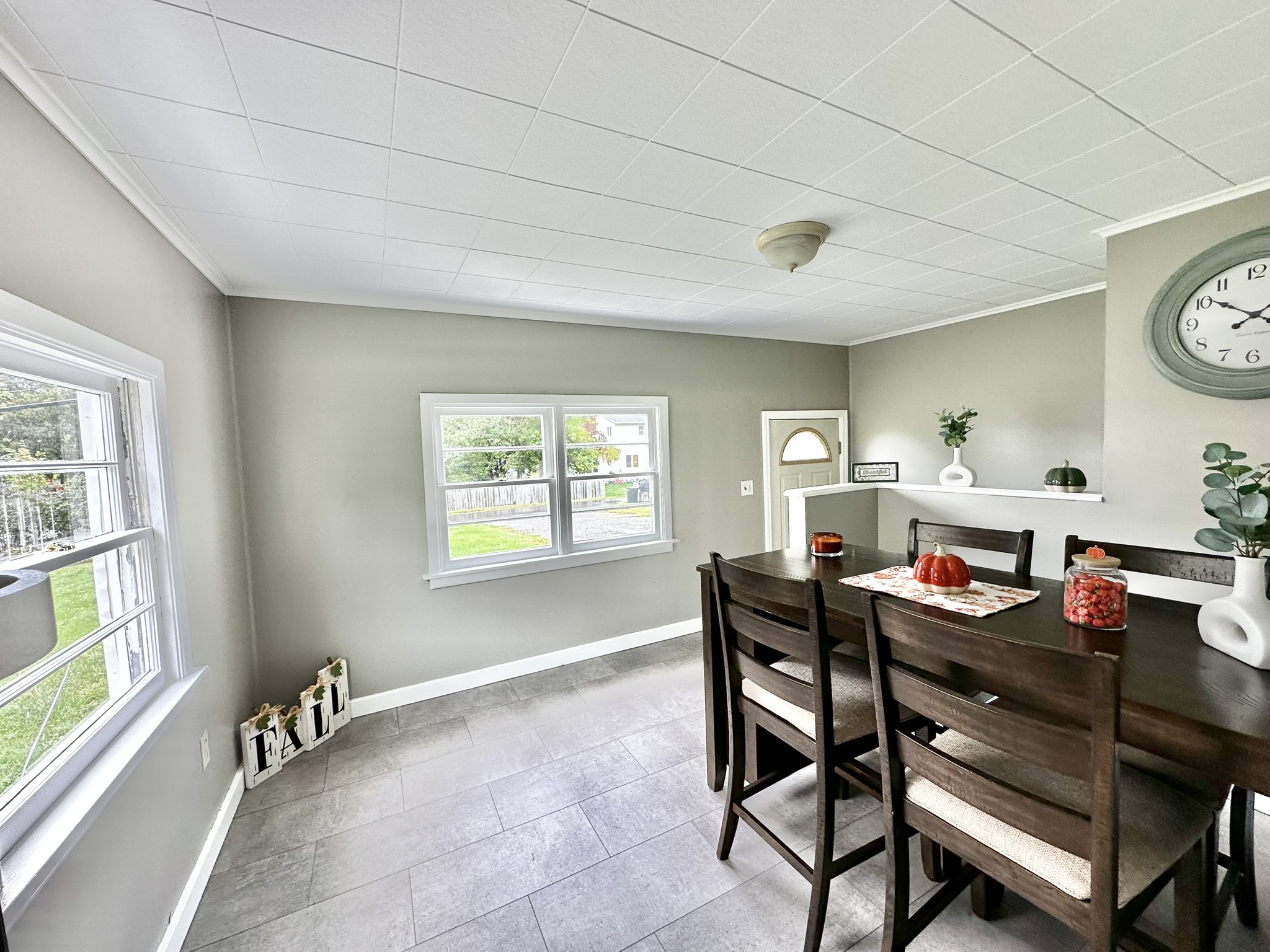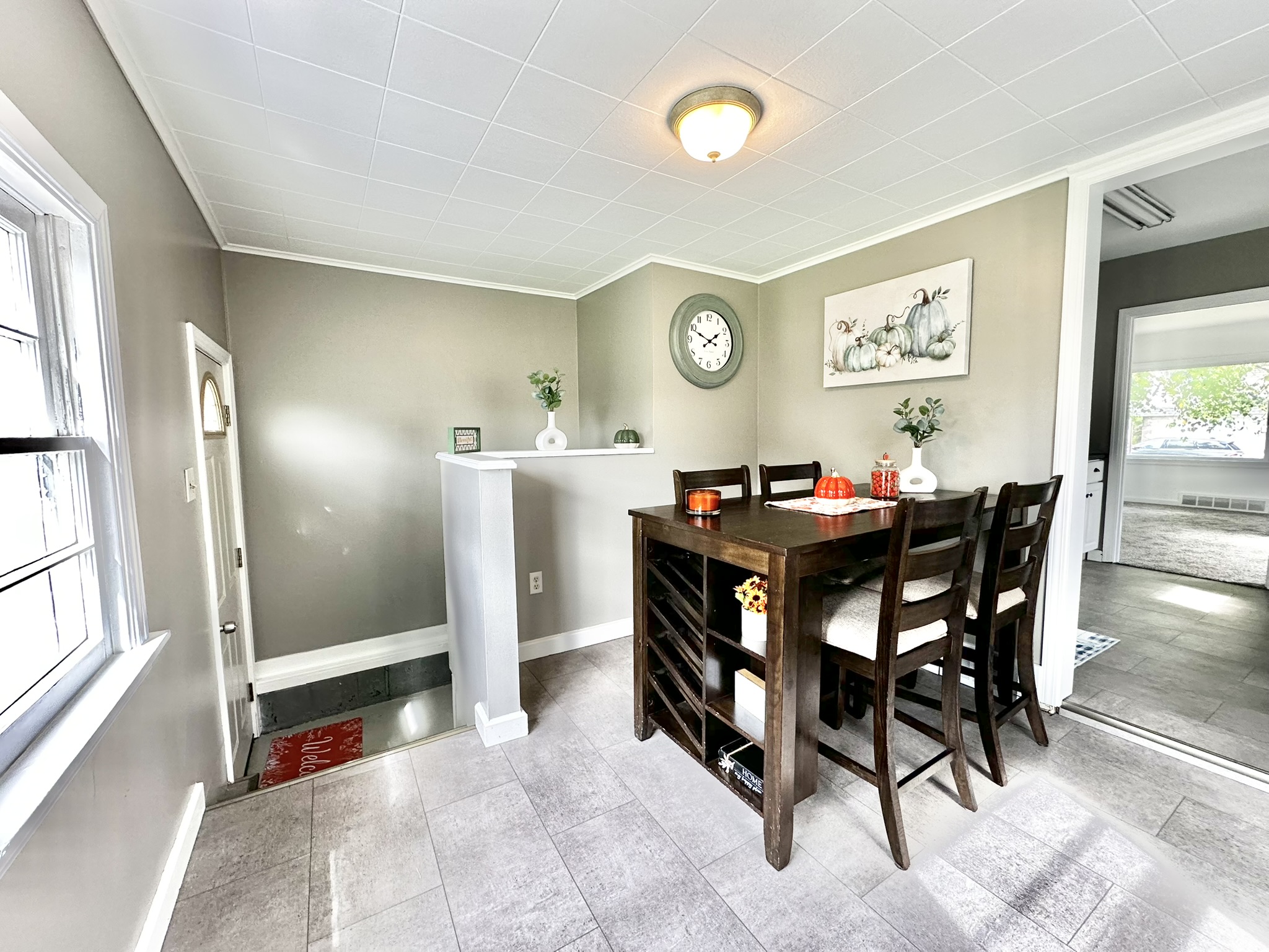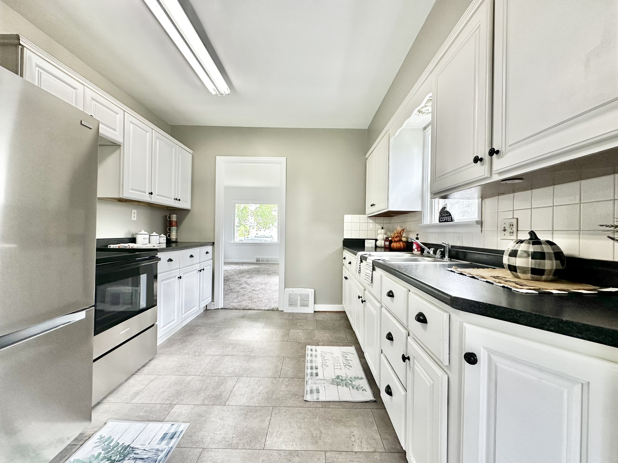 fresh paint throughout, and an updated kitchen with brand-new appliances. The formal dining room flows seamlessly from the kitchen