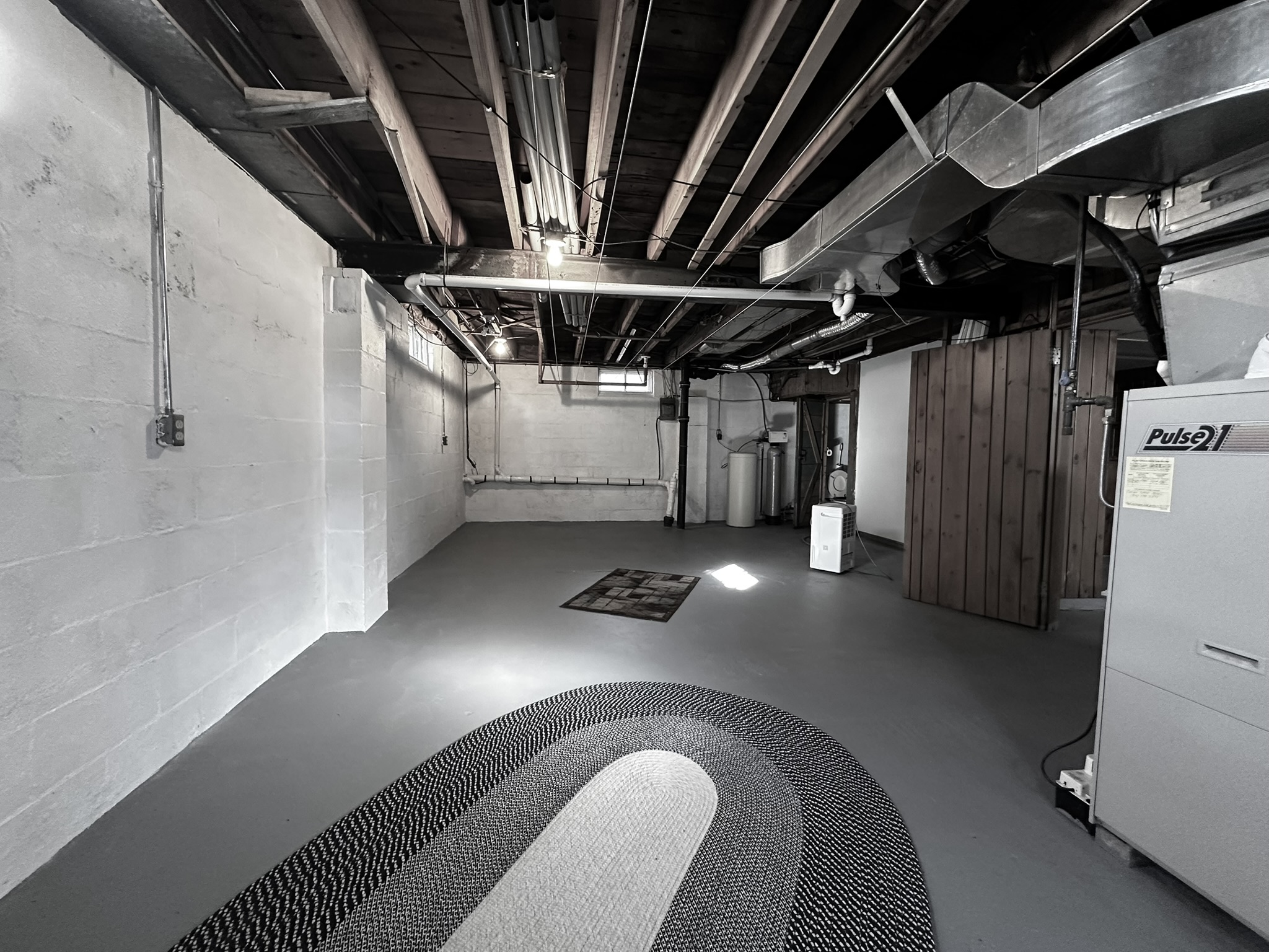 retreat. The unfinished portion is exceptionally clean and painted, complete with an additional toilet for added convenience.