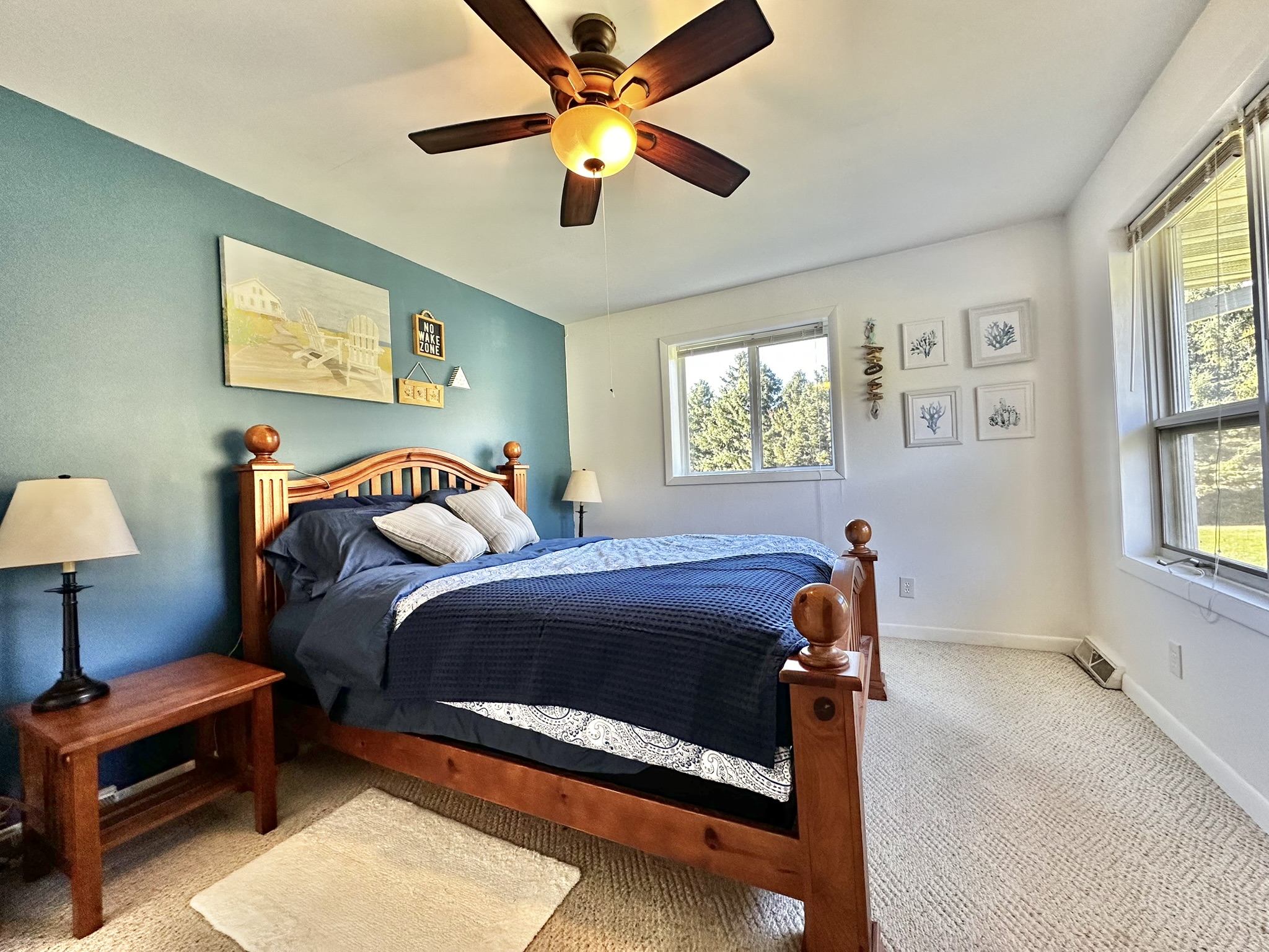 Enjoy the perfect blend of comfort, space, and location in this 4-bedroom, 2-bath home situated on a gorgeous 0.78-acre lot overlooking Lake Antoine. The bright kitchen offers ample storage and workspace and opens to a formal dining area with patio doors leading to a large back deck— perfect for outdoor gatherings. The living room features newer flooring, large windows, and incredible lake views that fill the space with natural sunlight. The main floor includes a generous primary bedroom, a spacious guest room, a full bath with abundant storage, and convenient first-floor laundry. The lower level expands your living area with two additional bedrooms, a full bath, a large family room for entertaining, egress windows, and plenty of extra storage space. A 3-car attached garage provides room for vehicles and recreational toys, and the designated hot tub area (hot tub negotiable) adds to the relaxation potential. Outdoor enthusiasts will love the easy access to nearby trails for year-round fun and the convenience of walking across the road to the boat landing or beach area. Whether you're seeking a peaceful year-round home, a seasonal getaway, or simply a place to unwind and take in the breathtaking views, this property offers it all in a prime Lake Antoine location!