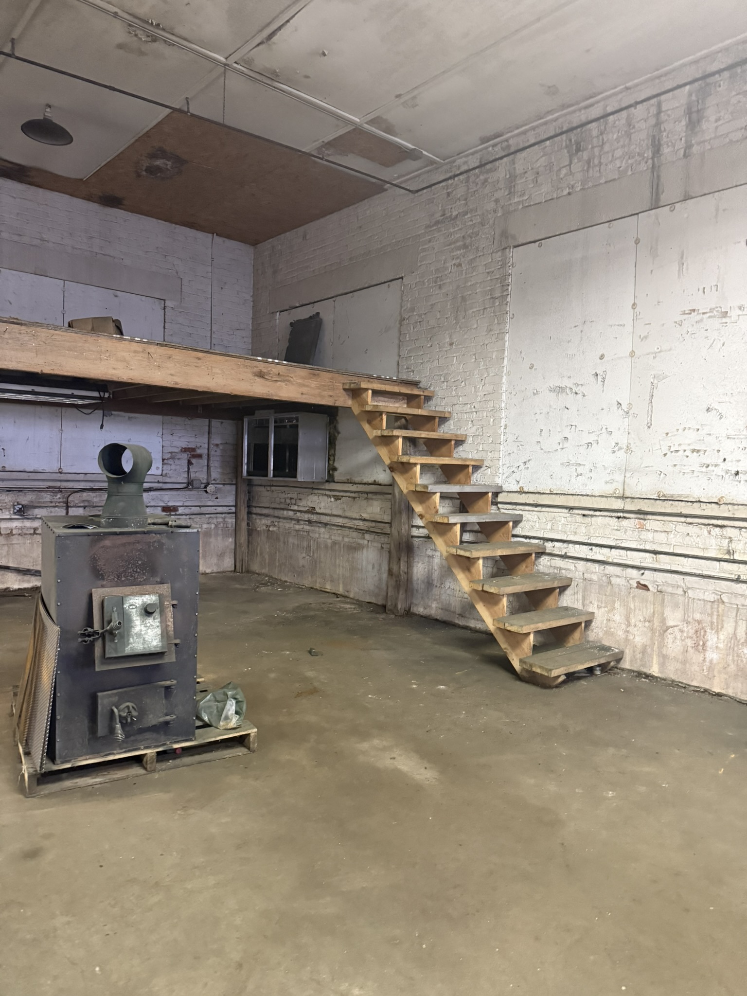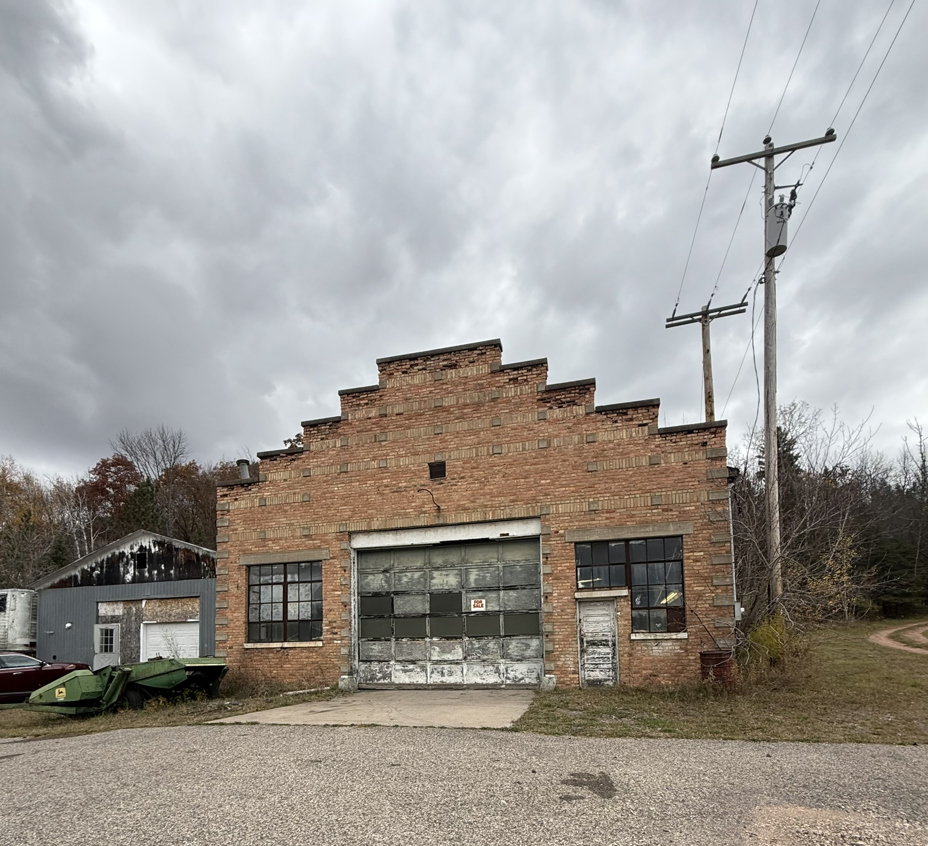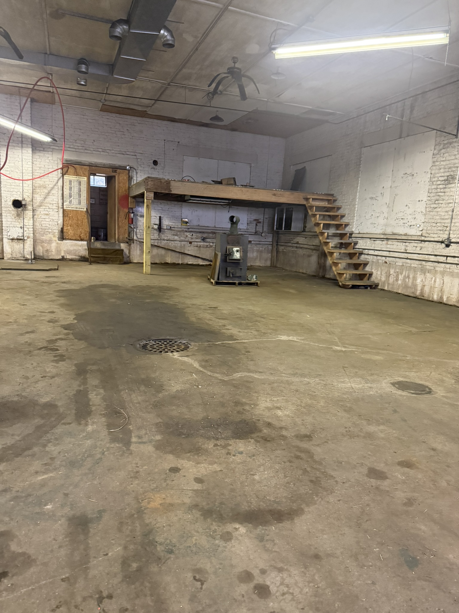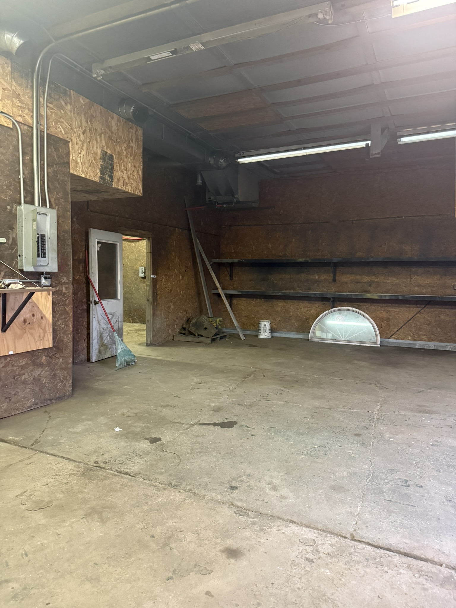 Shop with 14' ceilings, 12' doors on .31 acres.